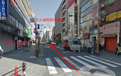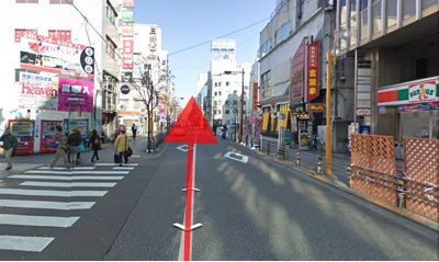 もう少し進むと右手に「Family Martさん」、左手に「世界の山ちゃん」「安楽亭」があるビルの交差点にあたります。 もう少しです。次の交差点の角まで! |