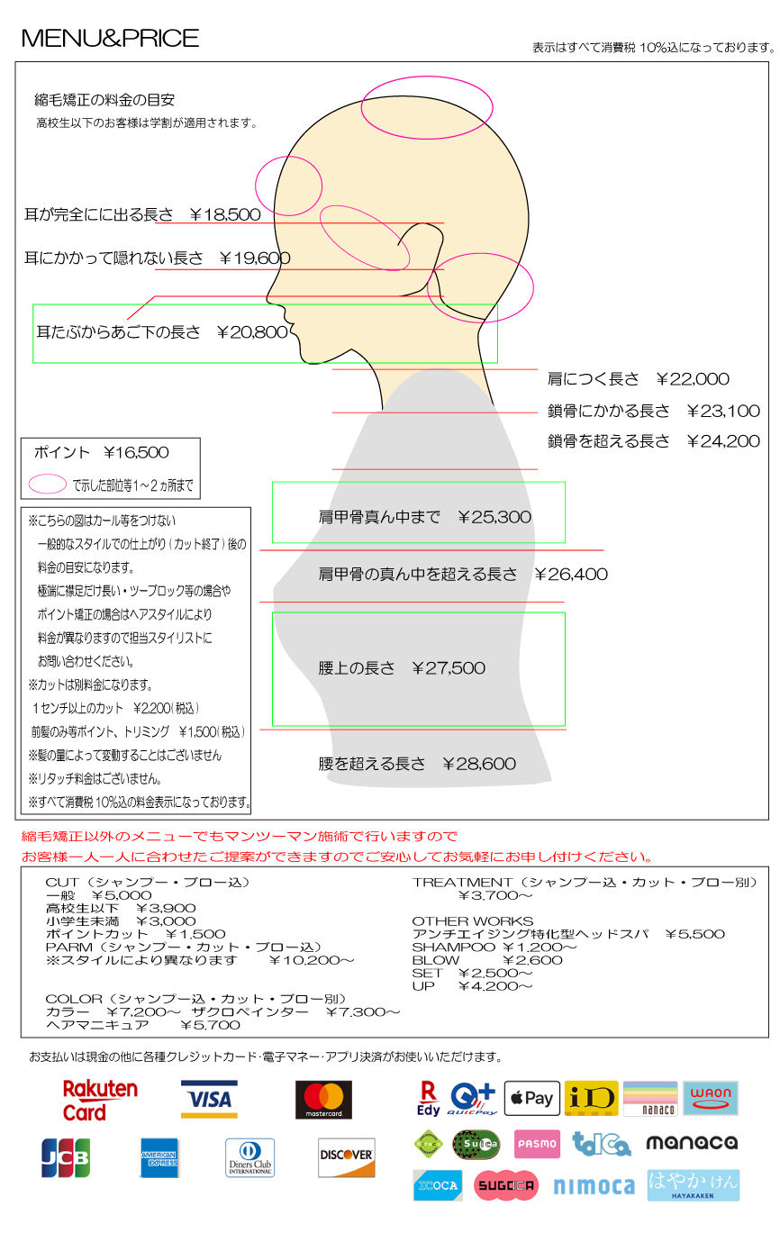 「ご来店ありがとうございます」 「またいらっしゃるのをお待ちしております」 「いつもありがとうございます」 をなんとかわかりやすいカタチでお伝えしたいので… よくあるポイントシステムですが、 ご利用金額(税抜)の2%をポイント還元 致します。 初回は貯めるだけになりますが(システムの都合上) 次回より1P=1円としてお使いください。 当然、毎回お使いになるも良し、 シャンプー・トリートメント・スタイリング剤に交換していただいても、 数回お貯め頂いて 施術料金全額をポイントでお支払い いただいても構いません。 現金と引き換え以外のご使用は自由です! ※なお、板橋店・プレミアム店では実施しておりません。 貯めることも使うこともできませんのでご注意ください。 他のクーポン・キャンペーンとの併用でのポイント使用はできません。 最終来店日より24カ月有効です。 ご了承ください。 |