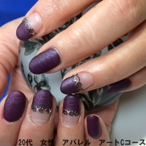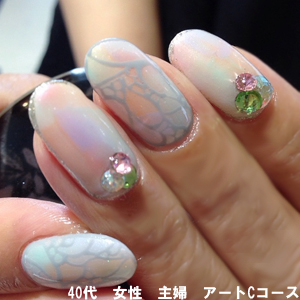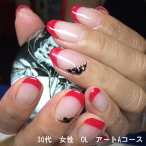 ジェルネイル シンプルコース ① クリア・・・・・・・・・・・・・・・・・・・・・・・・・・¥4,000 ② グラデーション・フレンチ・1カラー・・・¥6,000 上記はアートなしのシンプルなデザインとなります。 ジェルネイル アートコース ① アートA・・・¥ 8,000 ② アートB・・・¥10,000 ③ アートC・・・¥12, 000 ネイリスト様・ご同業者様 ¥15, 000 |